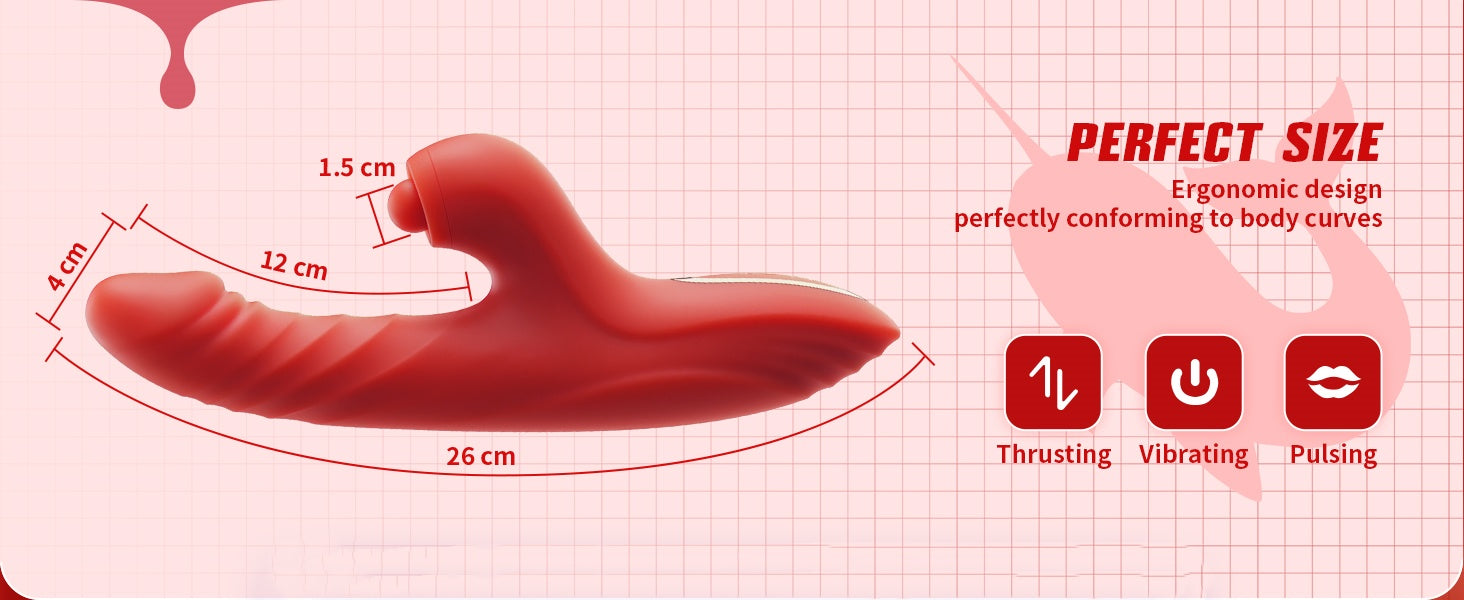 The vibrator dildos has a powerful pulsating function with a certain suction to massage any parts. Offering 5 pulse modes, 10 vibrations and 7 thrust modes, making it a great toys for solo games or couples gift for beginners or professional players.